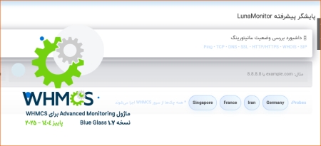 ماژول LunaMonitor یک سیستم پایش (Monitoring) و تست وضعیت سرویسها در محیط WHMCS است که توسط Lunapars توسعه داده شده و بر پایهٔ طراحی اختصاصی Glass Blue ارائه میشود. این ماژول به مدیران سرورها، اپراتورها و پشتیبانها اجازه میدهد تا بدون نیاز به ابزارهای خارجی، انواع تستهای شبکه، سرور و دامنه را مستقیماً از داخل پنل WHMCS انجام دهند.