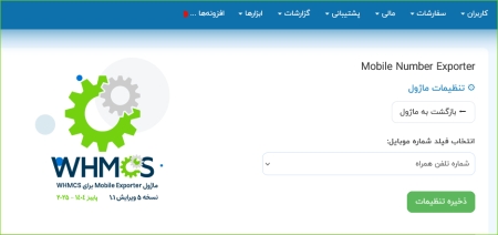 ماژول دریافت خروجی لیست شماره موبایل مشتریان سیستم مدیریت WHMCS